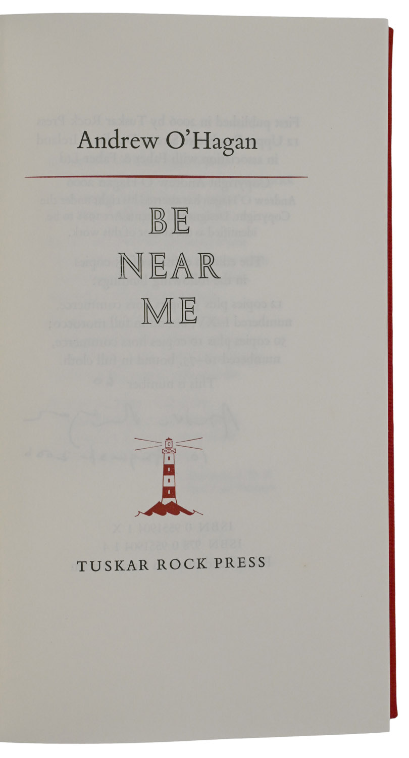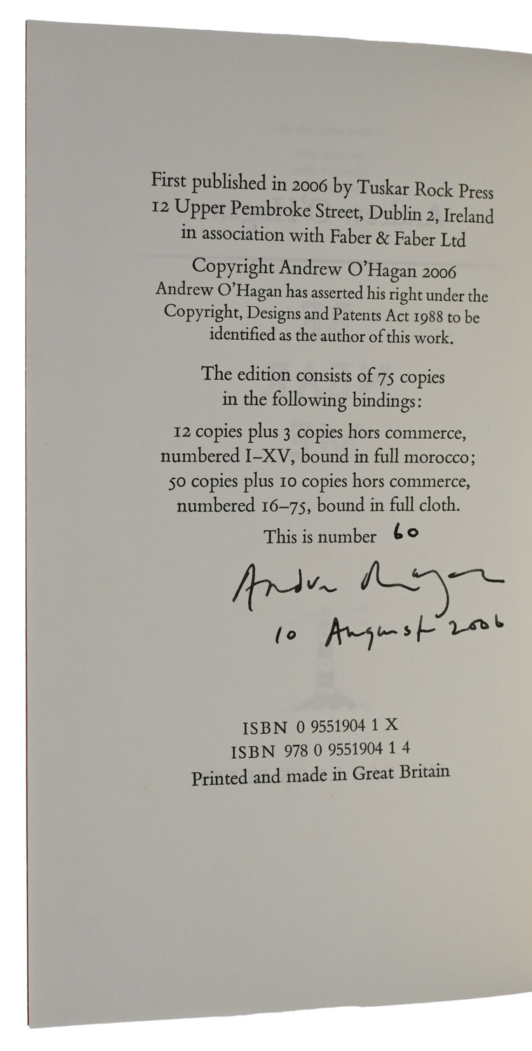 FIRST EDITION, NO. 60 OF 75 COPIES SIGNED BY THE AUTHOR, 8vo, pp. [x], 278. Original red cloth, spine lettered in gilt, red cloth slipcase. Slipcase too tight and lightly marked, some pulled threads. Signed and numbered by Andrew O’Hagan to limitation page, and dated 10 August 2006.
