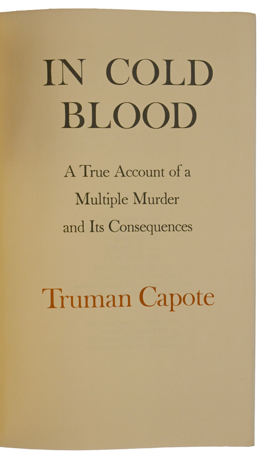 A sharp copy of the first British edition of Capote's 'non-fiction novel', a pioneering work of true crime investigating the Clutter family murders of 1959.
