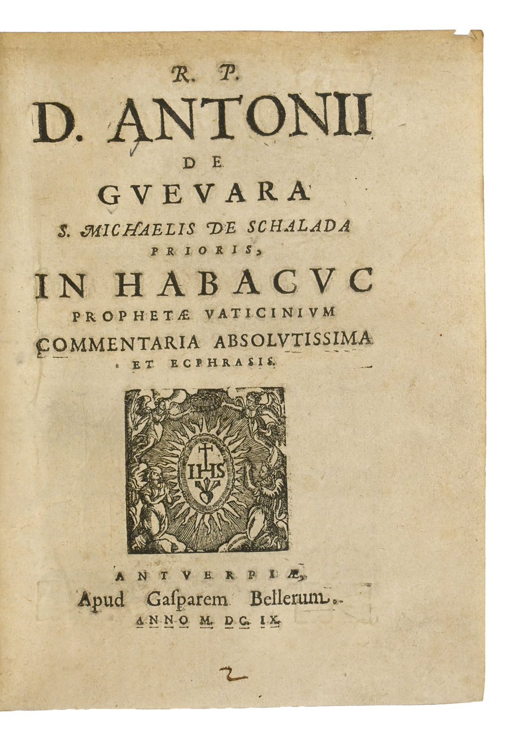 A biblical commentary on one of the Twelve Minor Prophets attributed to bishop and courtier Antonio de Guevara (c.1481-1545), which first saw print in 1585. Library Hub records this printing in Cambridge only, Worldcat adds seven further European library holdings.