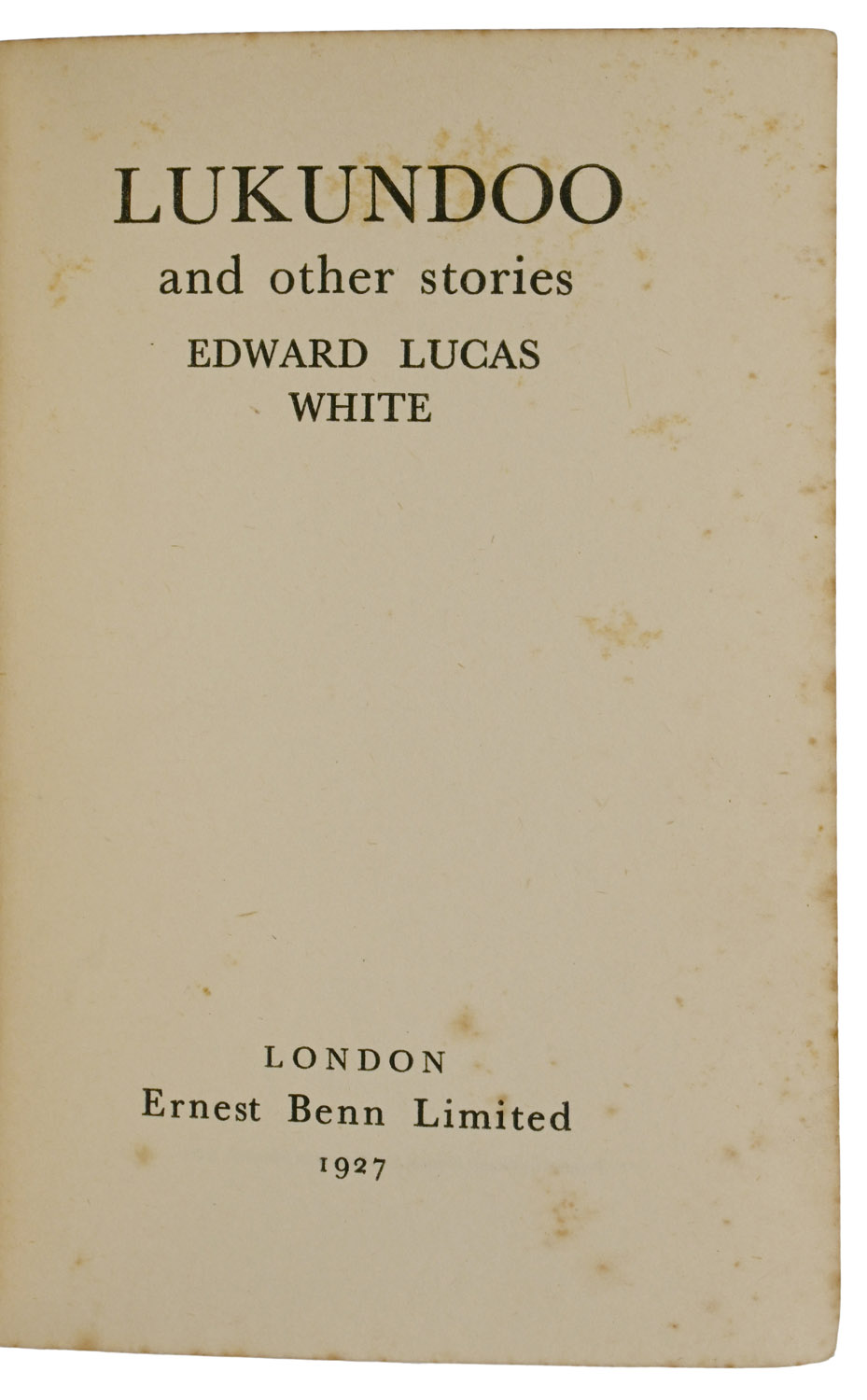 The first British edition, scarcer than the American, of the best-remembered work of the American author Edward Lucas White (1866-1934). White took inspiration from his own nightmares in his fantastical and horror stories; the title story here, in which an explorer suffers a nightmarish fate after being cursed by a witch doctor in a remote part of central Africa, is his most frequently reprinted.