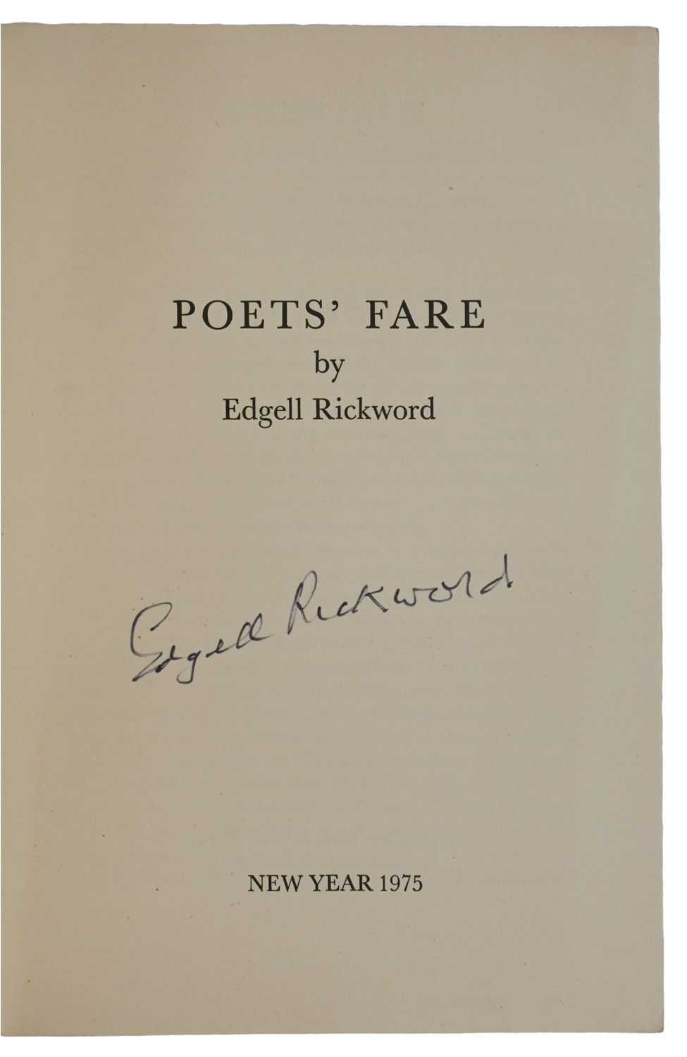 NO. 22 OF 50 COPIES SIGNED BY THE AUTHOR, 8vo, pp. [4]. Stitched as issued in original cream card wrappers printed in black. Wrappers lightly soiled Signed by Rickword to title-page.