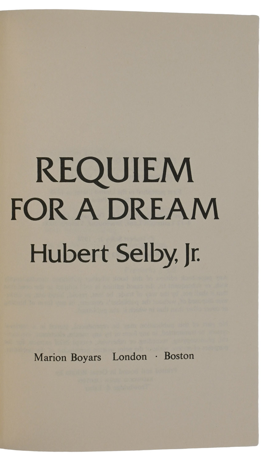 A sharp copy of the first British edition of Selby Jr's novel, the basis for the 2000 film of the same name directed by Darren Aronofsky.