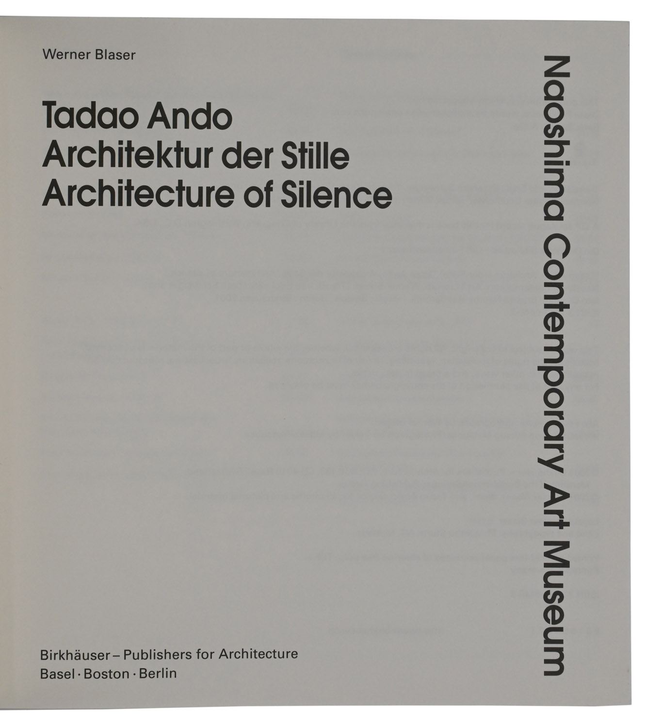 Blaser's photographic portrayal of the museum Ando designed from 1988-1995 on Naoshima Island. The entire book is bilingual, with a foreward by Ando as well as an essay by the museum director, Souichiro Fukutake.