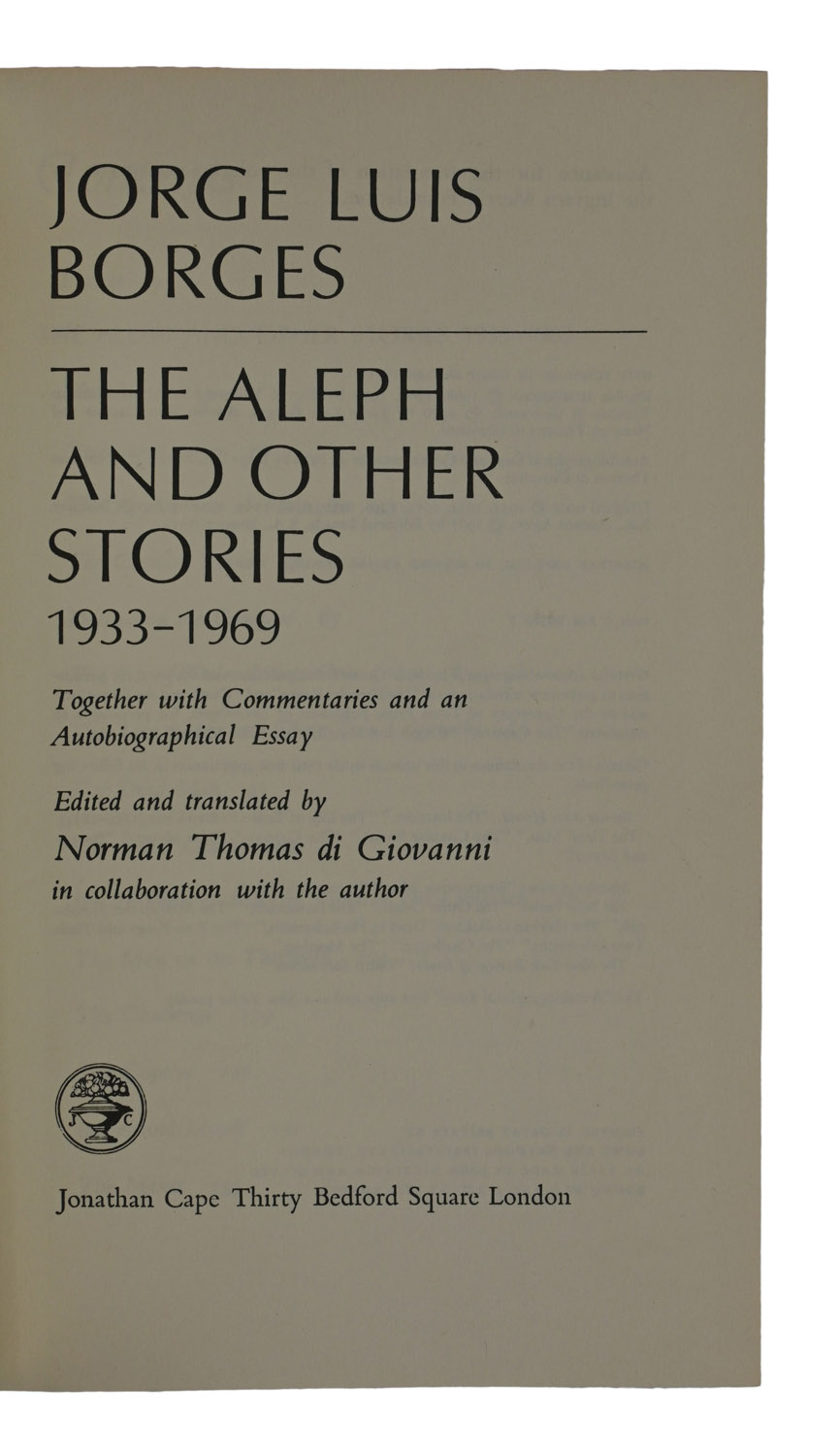 The first UK edition of this selection of Borges' popular short stories, along with an autobiographical essay first published in The New Yorker in 1970.
