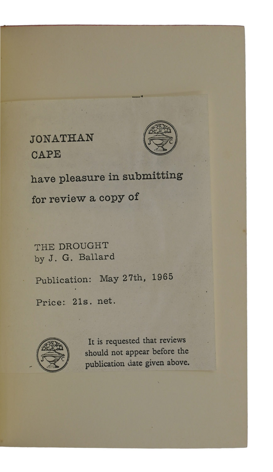 FIRST EDITION, 8vo, pp. 252. Original dark olive boards, spine lettered in gilt, top edge red, dustjacket printed in orange, red, and black. Extremities just slightly bumped, a touch of light soiling to dustjacket and two tiny marks to front panel. Cape review slip loosely inserted.