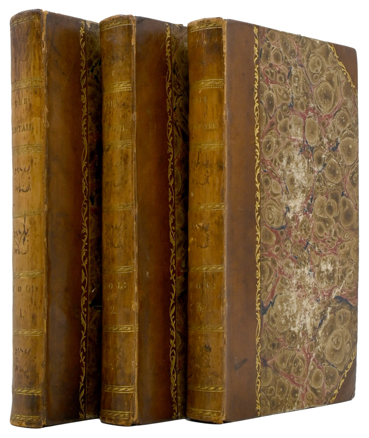 FIRST EDITION, 3 vols., 12mo, pp. [vi], 321, [1]; [iv], 333, [1]; [iv], 304. Contemporary half calf, marbled boards, spines divided by gilt rolls and lettered direct in gilt, other compartments tooled in blind. A little scattered spotting. Lightly rubbed, a touch of wear to extremities. Ownership inscriptions of Jessie[?] Heddie dated August 7th 1857, and inscriptions of Earlesferry House (one struck through) to flyleaves.