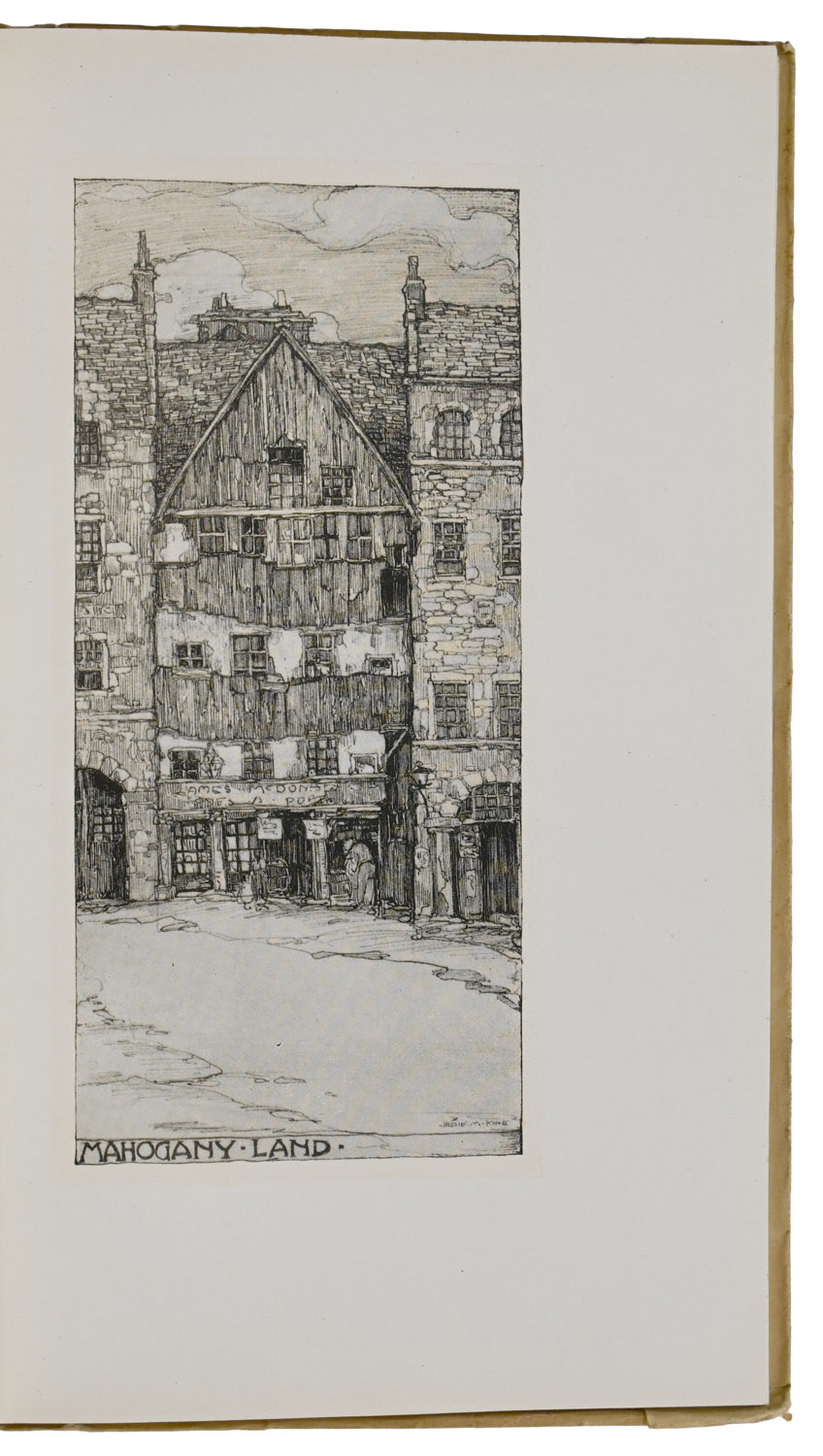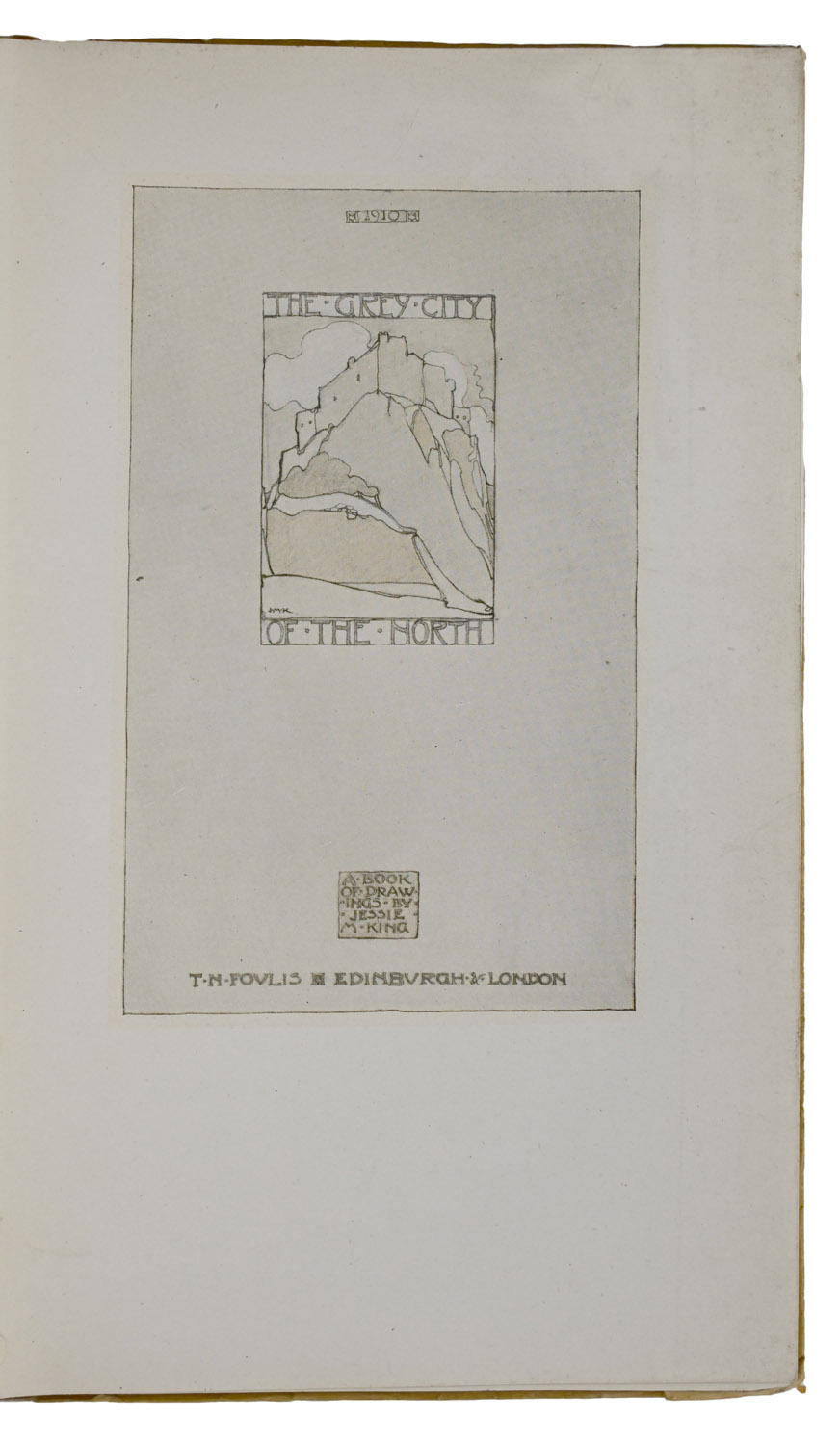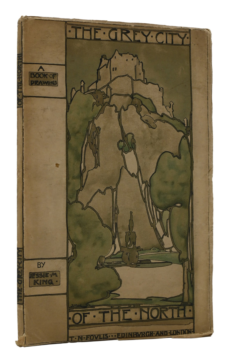 24 views of Edinburgh in striking Art Nouveau style by Glasgow artist and designer Jessie M. King (1875-1949), accompanied by facing-page descriptive text; a companion volume on Glasgow, 'The City of The West,' was issued the following year.
