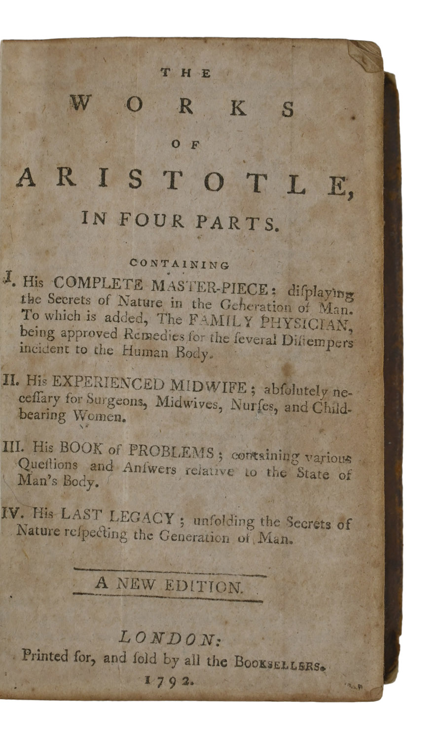 ![The Works of Aristotle, in Four Parts. Containing I. His Complete Master-Piece [...] II. His Experienced Midwife [...] III. His Book of Problems [...] IV. His Last Legacy [...] A new edition.](https://www.mcnaughtans.co.uk/wp-content/uploads/2026/03/8001_1.jpg)