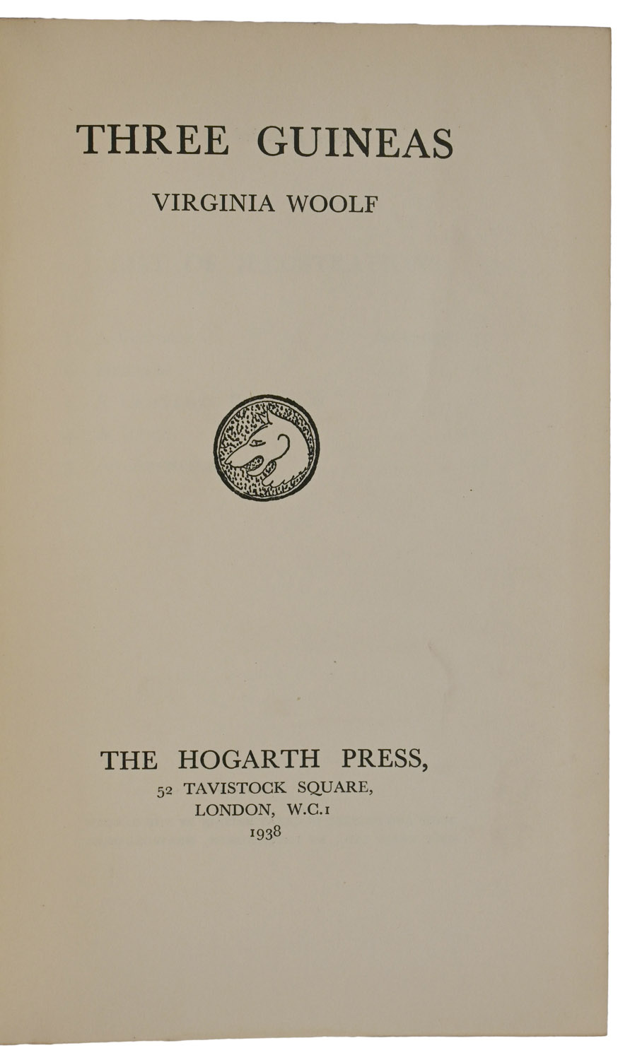 The first edition of Woolf's book-length essay on war and women's work and education, the non-fiction portion of was was originally conceived as a 'novel-essay' - the fiction portion having been published as The Years the previous year. Only about half of the first impression was issued as such in this form; the remaining sheets were bound in green cloth as part of the Uniform Edition five years later.